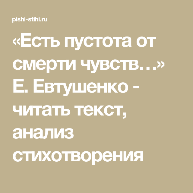 Анализ стихотворения Евтушенко «Есть пустота от смерти чувств…»