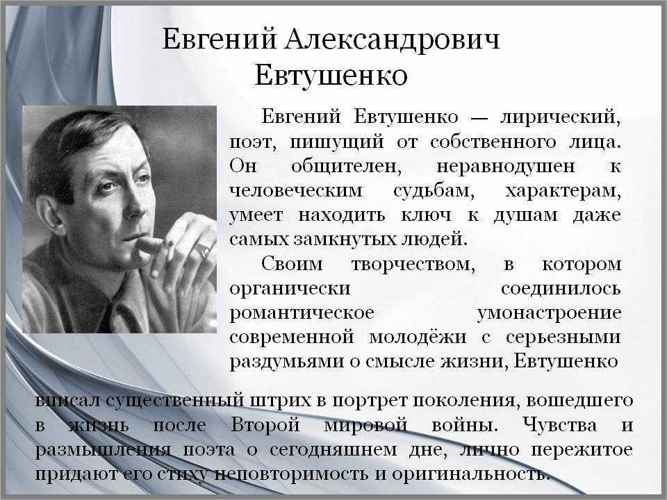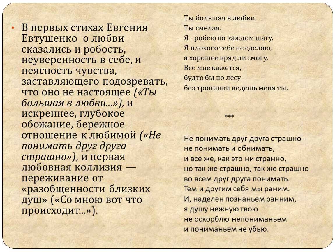 Евгений ЕвтушенкоРубрики стихотворения: Анализ стихотворений ✑