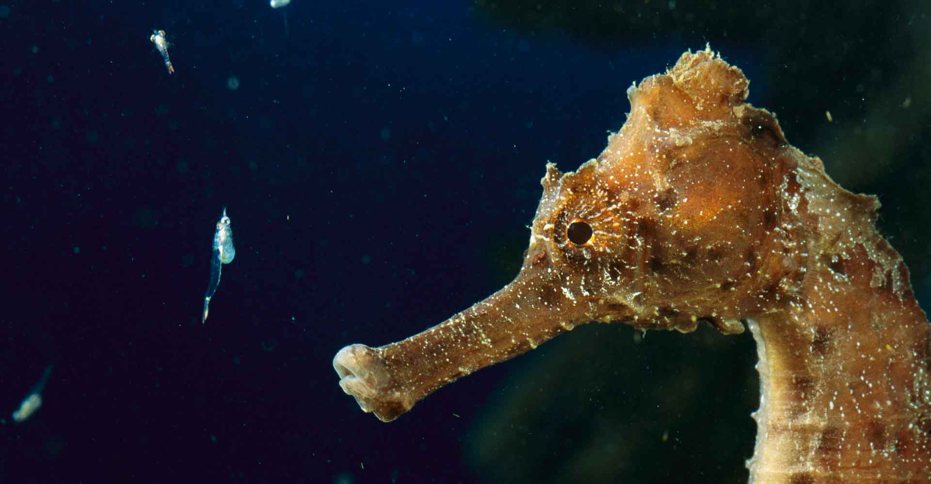 За сутки морские коньки съедают около 3 тысяч планктонных рачков. Но морские коньки питаются практически любой пищей, лишь бы она не превышала размеров рта. Рыба морской конек является охотником. Своим гибким хвостом морской конек цепляется за водоросли и остается неподвижным, пока добыча не окажется в необходимой близости от головы. После чего морской конек всасывает воду вместе с пищей.