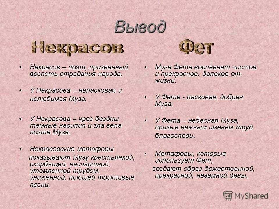В период создания стихотворения в русской литературе уже образовалось 2 течения: это чистое искусство, направлению которого следовал А. А. Фет, и реалистическое, народное искусство, представителем которого являлся Н.А. Некрасов.