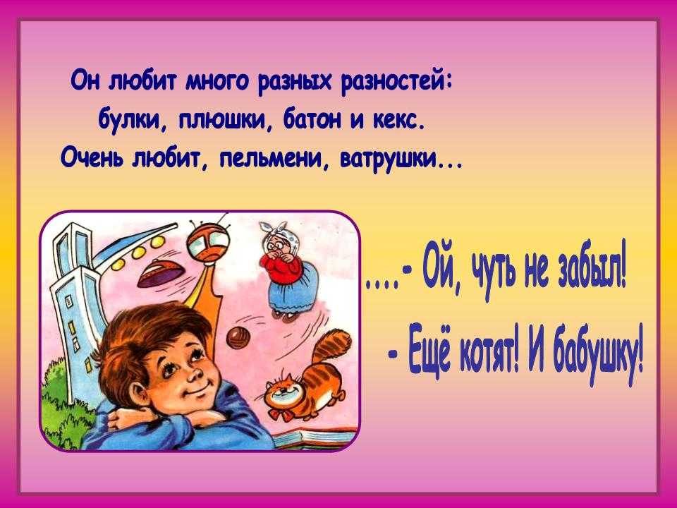 - способствовать развитию у детей чувства юмора, речи, мышления.