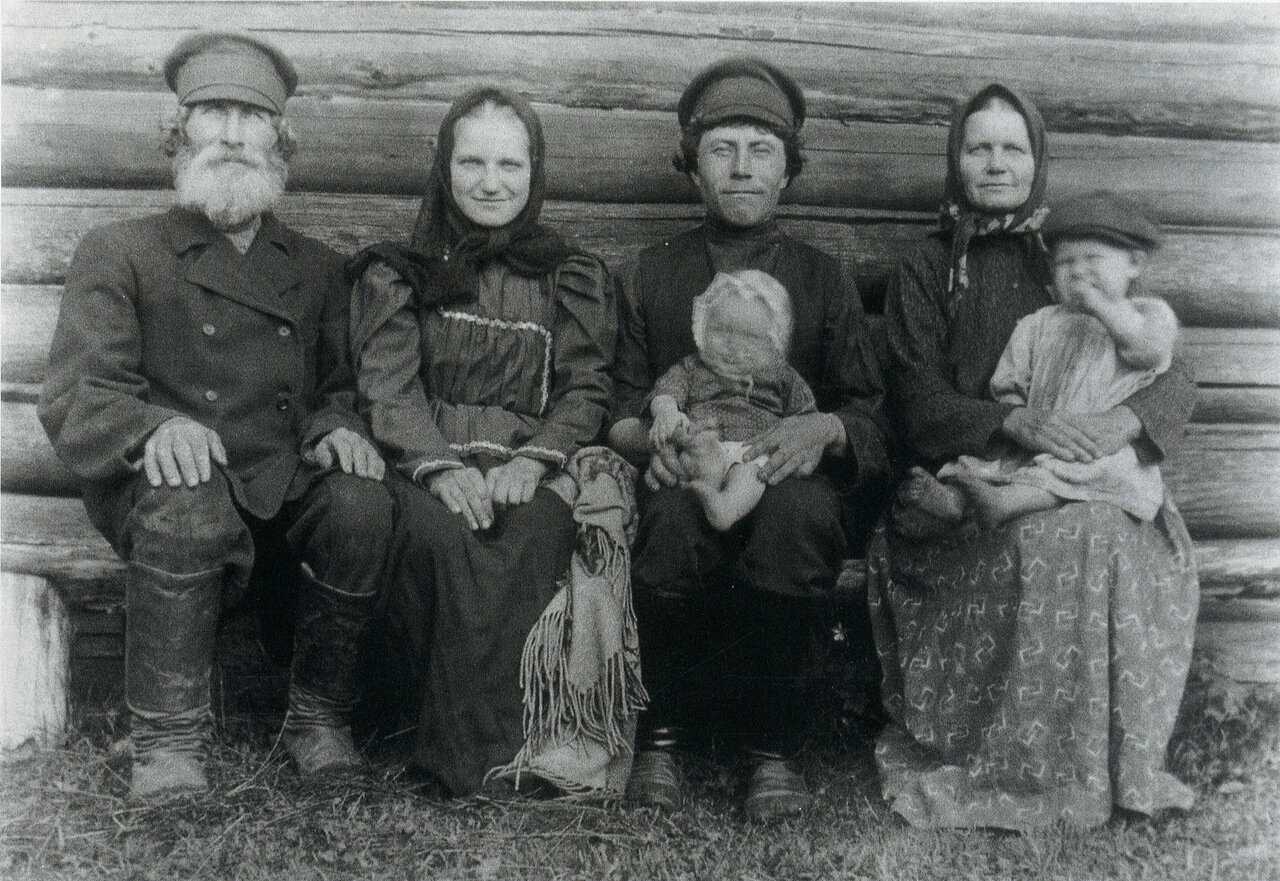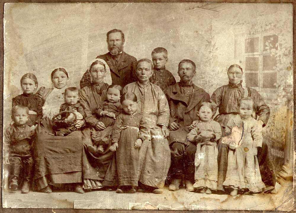 Фотография семьи крестьянина Василия Попкова (предположительно 1907г.).