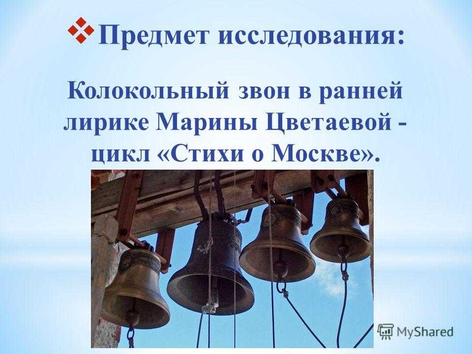Предмет исследования: Колокольный звон в ранней лирике Марины Цветаевой — цикл «Стихи о Москве».