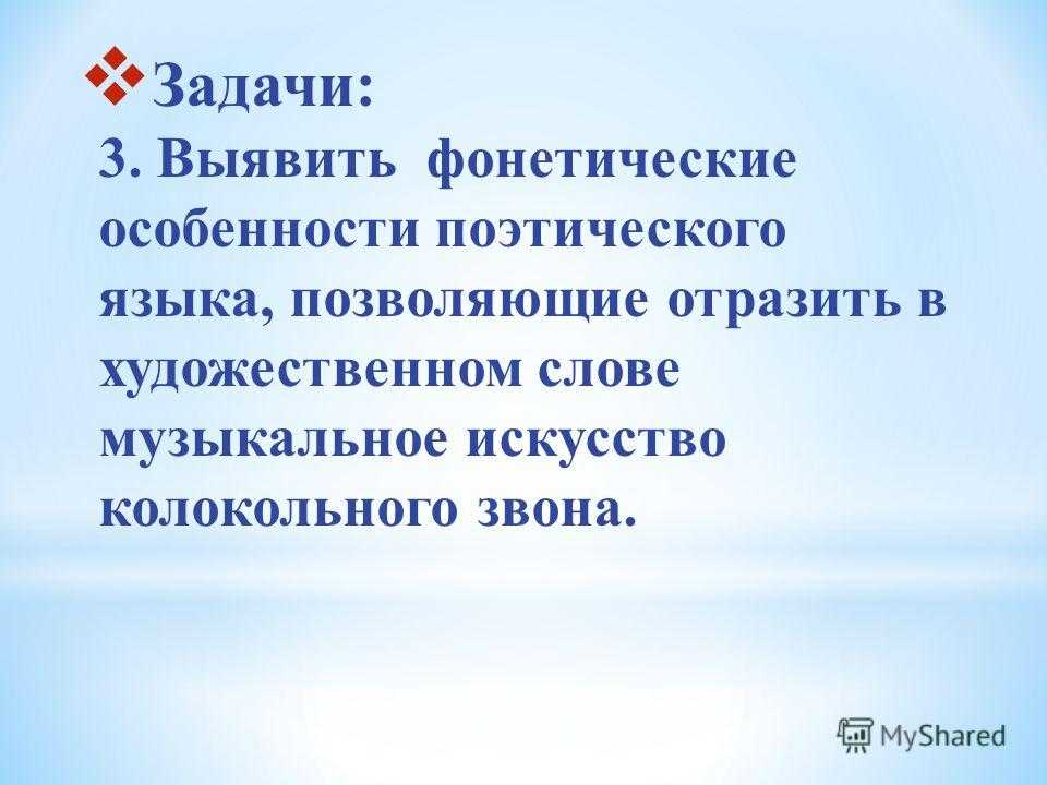 Задачи: 3. Выявить фонетические особенности поэтического языка, позволяющие отразить в художественном слове музыкальное искусство колокольного звона.