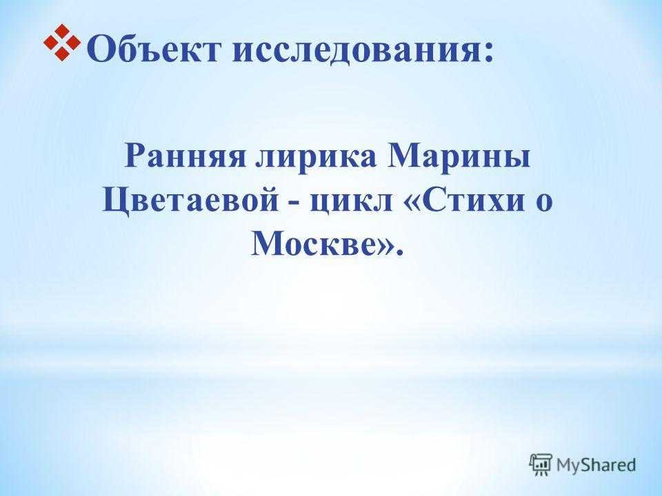 Объект исследования: Ранняя лирика Марины Цветаевой — цикл «Стихи о Москве».