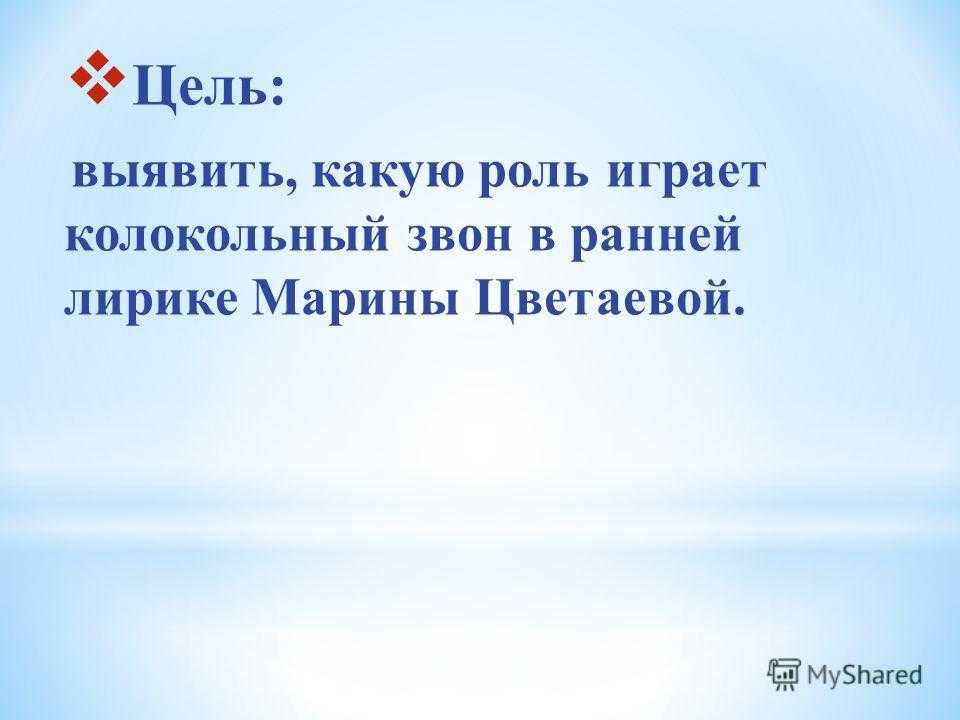 Цель: выявить, какую роль играет колокольный звон в ранней лирике Марины Цветаевой.