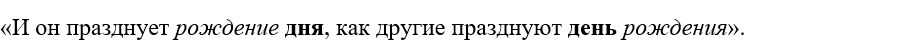 Как видим, слова в предложении использованы одни и те же, но их значения различны. В первой части предложения имеется в виду утро, а в другой – торжество в честь рождения человека.