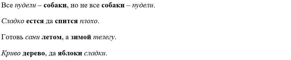 Многие русские пословицы и поговорки построены на хиазме. Рассмотрим несколько примеров:
