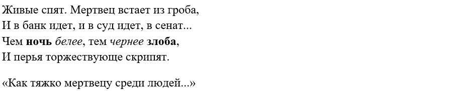 - «Отчаяние мертво, и боль мертва. » ( Альберт Самайн , лексический тип 3)