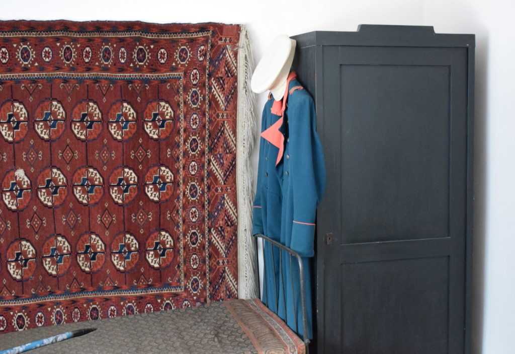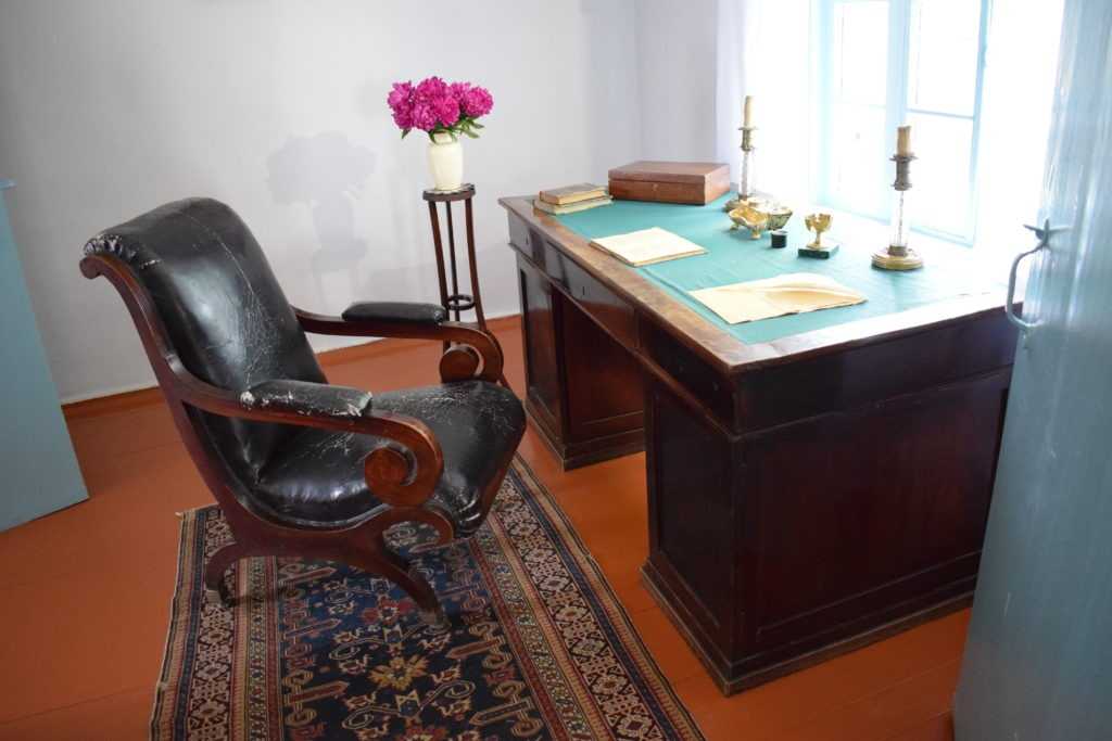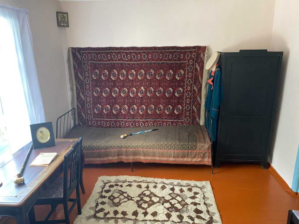 Обстановка комнаты Столыпина очень скромная. Из мебели здесь железная кровать, шкаф и стол со стулом. На столе курительная трубка и портрет Столыпина в одежде курда. На шкафу висит офицерская форма пехотного полка.
